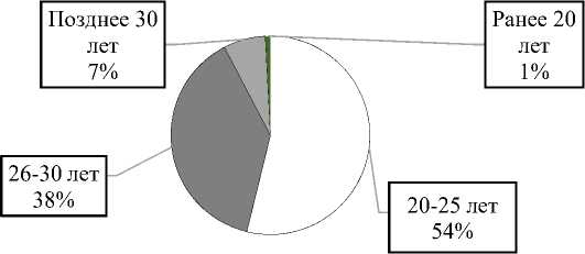 На вопрос о предпочтительном возрасте для вступления в брак 54% опрошенных выбрали диапазон 20-25 лет. Это свидетельствует о распространенном понимании раннего брака как подходящего, что коррелирует с рядом традиционных представлений о семейных ценностях. 38,2% указали на возраст 26-30 лет, демонстрируя изменение социальных норм и успеха индивидуальной самореализации перед вступлением в брак. Лишь 6,9% выбрали возраст старше 30 лет, что может указывать на общее стремление к раннему формированию семьи (рисунок 7). Сравнение с другими странами показывает, что в большинстве западных стран, таких как США и Канада, тенденция к более позднему вступлению в брак становится более выраженной, что может быть связано с приоритетом индивидуальной карьеры и образования респондентов.