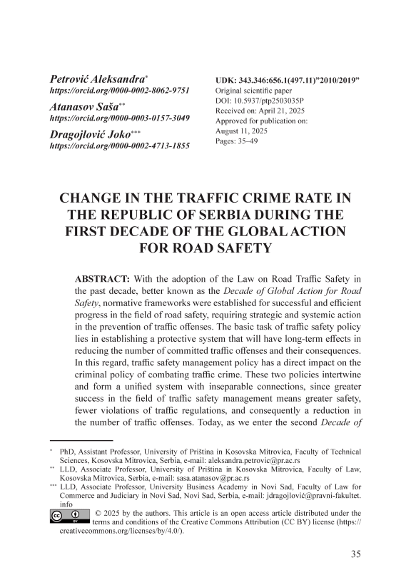 IDR: 170211020 | УДК: 343.346:656.1(497.11)”2010/2019” | DOI: 10.5937/ptp2503035P