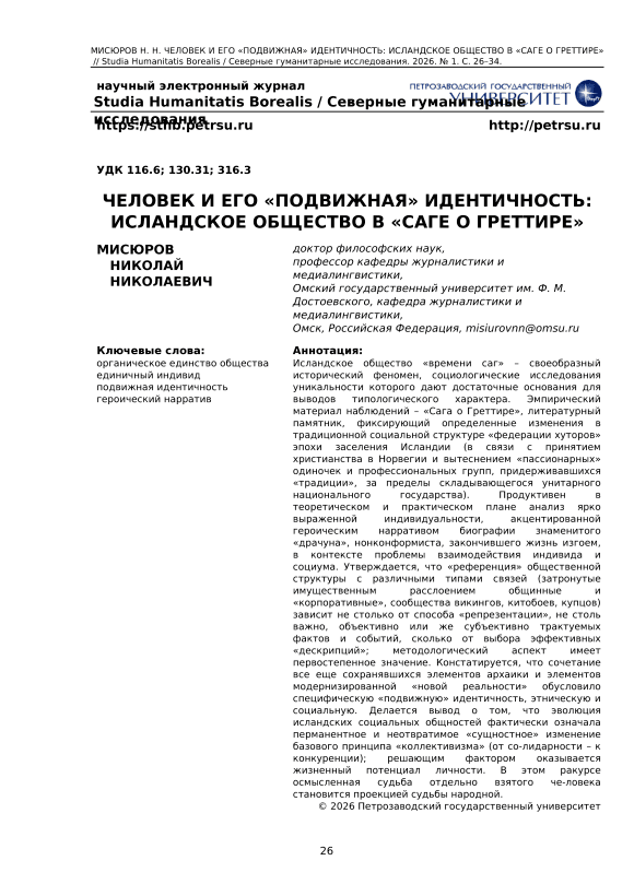 Человек и его «подвижная» идентичность: исландское общество в «Саге о Греттире»