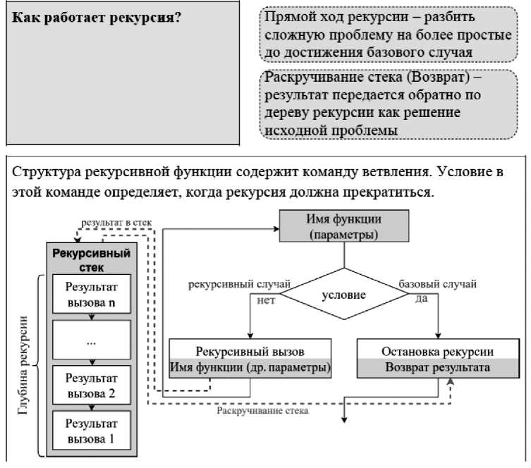 Рис. 2. Формирование ментальной модели «Рекурсия» через схемы и базовые понятия Fig. 2. Formation of the Recursion mental model through schemes and basic concepts