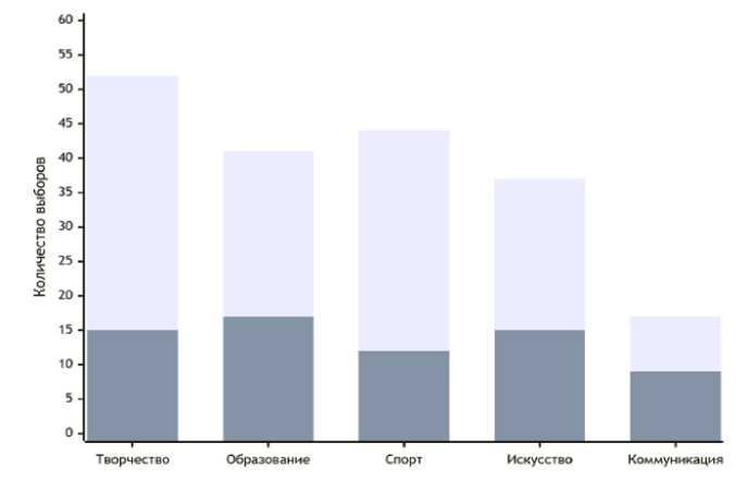 Рис. 1. Сравнительные характеристики предпочитаемых сфер цифрового саморазвития. Светлый цвет – студенты-бакалавры (поздние Z), темный – магистранты (более старшие Z) Fig. 1. Comparison of preferred activities for digital self-development.