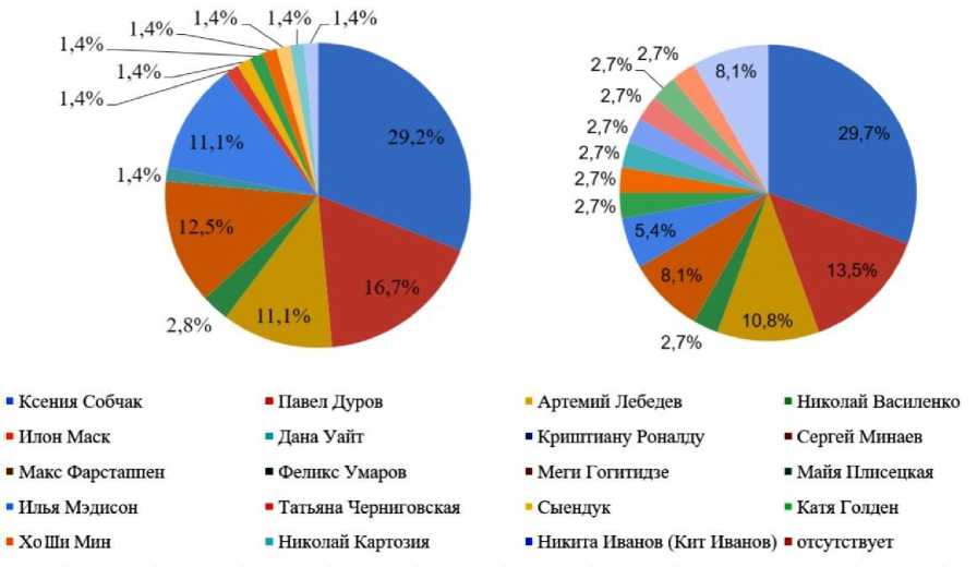 Магистранты выбирали таких персон, как Майя Плисецкая, Алла Пугачева, Татьяна Черниговская, Марина Могилко, Катя Коче-нок, Ася Рош, Катя Голден, Хо Ши Мин и др. В целом студенты выбирали ярких сетевых инфлюэнсеров, а магистранты предпочитали инфлюэнсеров, не только позиционирующихся в сети, но и проявивших себя и в реальности.