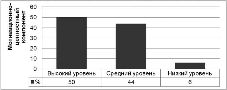 Рисунок 1. Анализ сформированности мотивационно-ценностного компонента готовности (%) Источник: здесь и далее рисунки выполнены автором.
