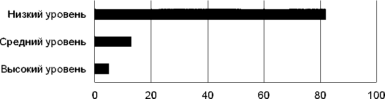 Низкий уровень ( ∼ 6 %) свидетельствует о недостаточной личной заинтересованности в профессиональной цифровизации.