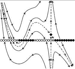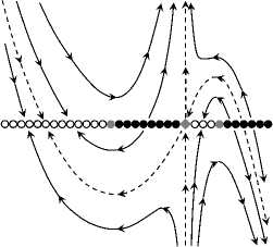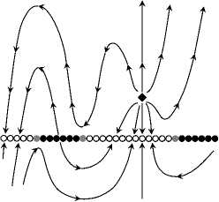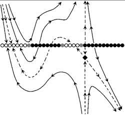 The phase portrait of the system (8) for each fixed value of λ can be constructed by combining the phase portrait of the equations x = —Li(x,y,A), y = Li(x,y,A)