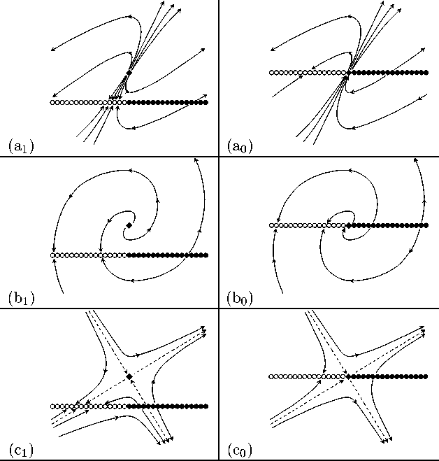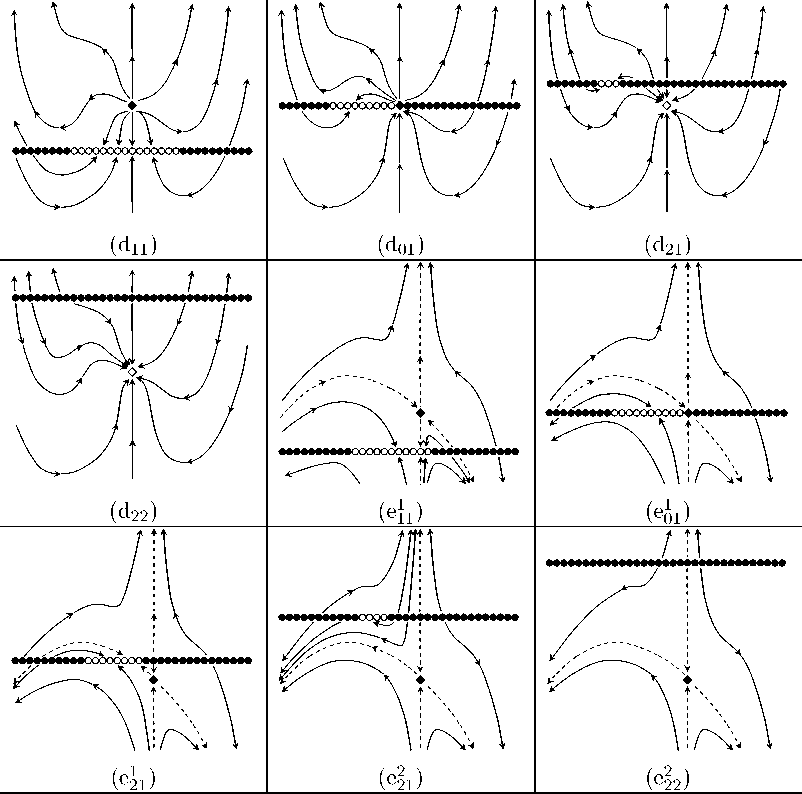 Fig. 4. Phase portraits of the model system (49) corresponding to the classification in Tables 5 and 6.