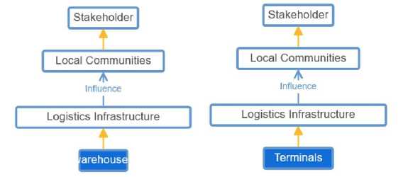 Fig. 14. Relationships between entities of the ontology’s logistics infrastructure: warehouses, terminals (compiled by the authors).