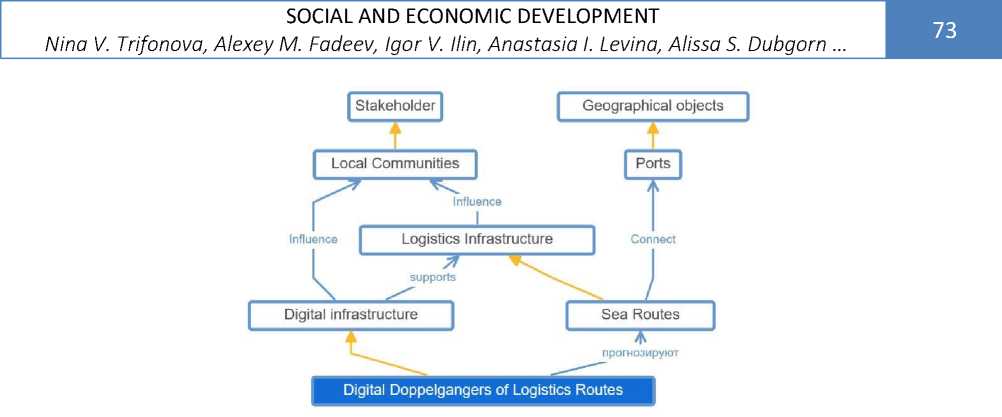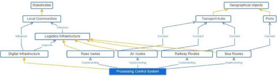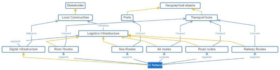 Fig. 5. Relationships between entities of the ontology’s digital infrastructure: digital twins of logistics routes (compiled by the authors).