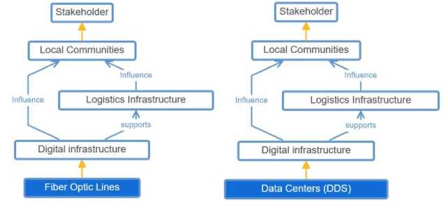 Fig. 7. Relationships between entities of the ontology’s digital infrastructure: fiber optic lines, data centers (compiled by the authors).
