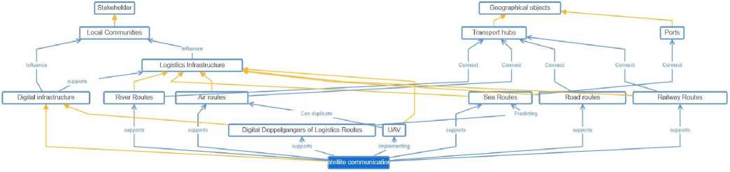 Fig. 9. Relationships between entities of the ontology’s digital infrastructure: satellite communications (compiled by the authors).