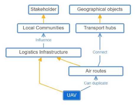 Fig. 10. Relationships between entities of the ontology’s logistics infrastructure: UAVs (compiled by the authors).