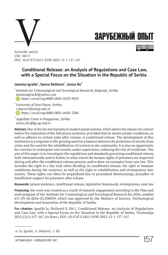 Conditional release: an analysis of regulations and case law, with a special focus on the situation in the Republic of Serbia