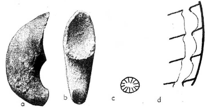 Fig. 3. Karoceras typicum Foerste. A — dorsal view, b — lateral view, c — dorsoventral section of the siphus, d — long section of the siphon [25, p. 314].