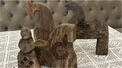 Fig. 6. Traditional Vologda carved horseys and a crocheted tablecloth in the interior of the boutique hotel “Marusya” in Vologda