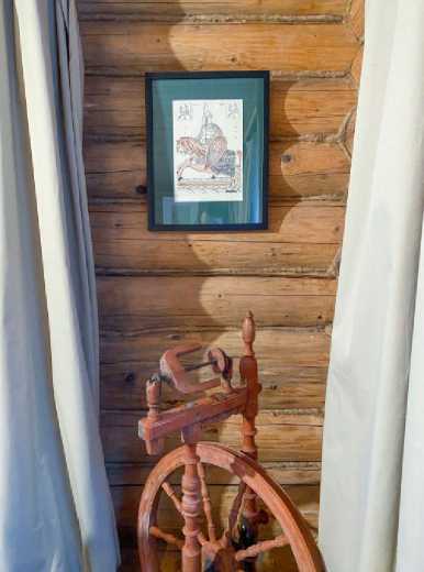 В интерьерах в русском стиле используют как подлинные предметы традиционного крестьянского быта (прялки, рубели, деревянные корыта, чугуны, плетеные корзины и берестяные туеса и т. п.), так и изделия современных мастеров и стилизации (рис. 7).