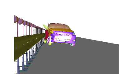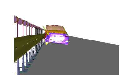 The vehicle model comprised approximately 393 000 nodes and 380 000 elements, whereas the guardrail system comprised approximately 505 000 nodes and 485 000 elements.