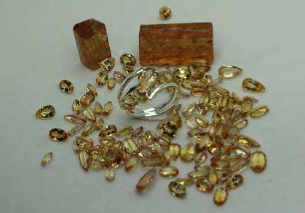 Figure 2 – Silver ring with Imperial Topaz, surrounded by cut and natural Topaz gems