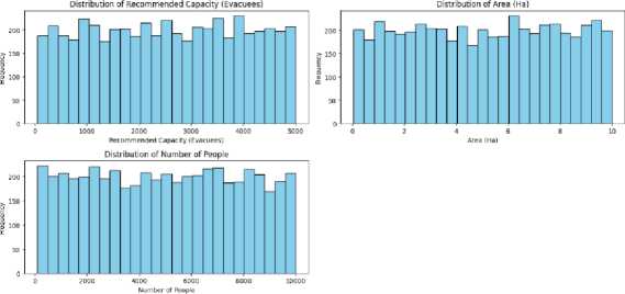 Quantitative data analysis was used in this research to measure the TS capacity in Padang City, based on both spatial and demographic parameters. The population data set contained 5,000 records filled with hypothetical characteristics of the evacuees. This analysis uncovered statistical patterns, provided an overview of relations between the features and prepared for ML modeling with the XGBoost model.