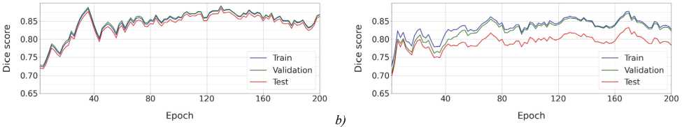 Thus, the proposed training pipeline enhances the segmentation quality over the baseline, with each improvement contributing to the final segmentation quality.