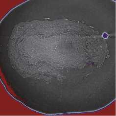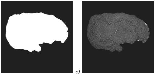 Fig. 3 a presents an example of the OB slice with the superimposed boundaries of these five layers. The bright white curve on the slice corresponds to the boundary between the paraffin and the surrounding air.