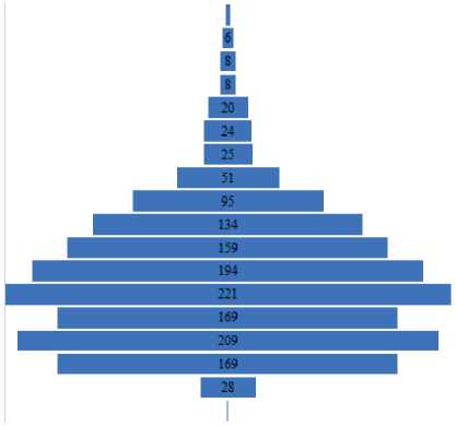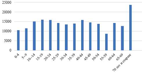 Fig.2. Distribution of the population of the Republic of Abkhazia by age groups in 2003 (thousands of people).