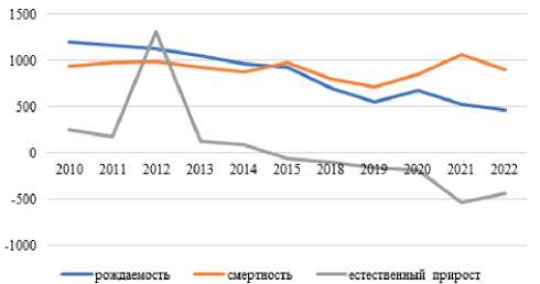 Fig. 5. Natural population movement in the Republic of Abkhazia from 2010 to 2022.