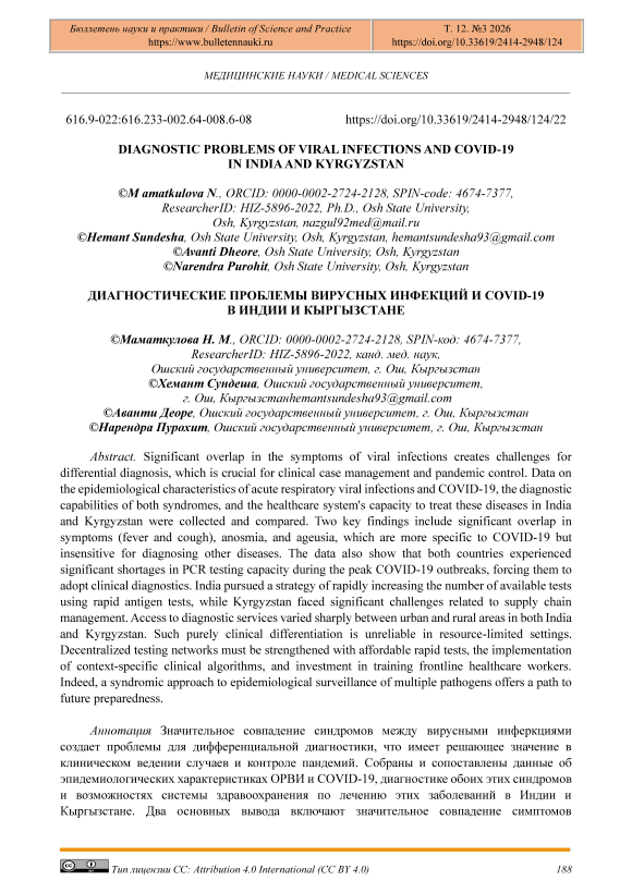 Диагностические проблемы вирусных инфекций и COVID-19 в Индии и Кыргызстане