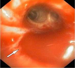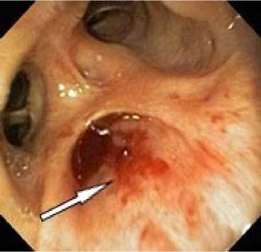 Эзофагогастродуоденоскопию и трахеоброн-хоскопию у пациентов выполняли с использованием видеогастроскопов и видеобронхоскопов фирмы Olympus на видеосистеме Olympus Exera III с применением оптической хромоскопии для лучшей визуализации патологически изменённых участков слизистой оболочки по стандартной методике. Эндоскопические диагностические исследования выполняли под внутривенной седацией или комбинированной эндотрахеальной анестезией. Для местной анестезии голосовых складок применяли орошение их 2% раствором лидокаина. При рецидивирующих кровотечениях из просвета бронха без видимых источников и повреждений на слизистой оболочке бронхов с целью гемостаза использовали клапанный обтуратор «Медланг», диаметр клапанного обтуратора подбирался в соответствии с диаметром блокируемого бронха.