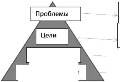 Модель знаний предметной области в условиях билингвизма целесообразно трактовать как энтропийно организованную пирамиду проблемного пространства, в которой структура выстраивается вокруг ключевых понятий, составляющих содержание соответствующих би-лингвальных ментальных образований, схем и моделей (рис. 3).
