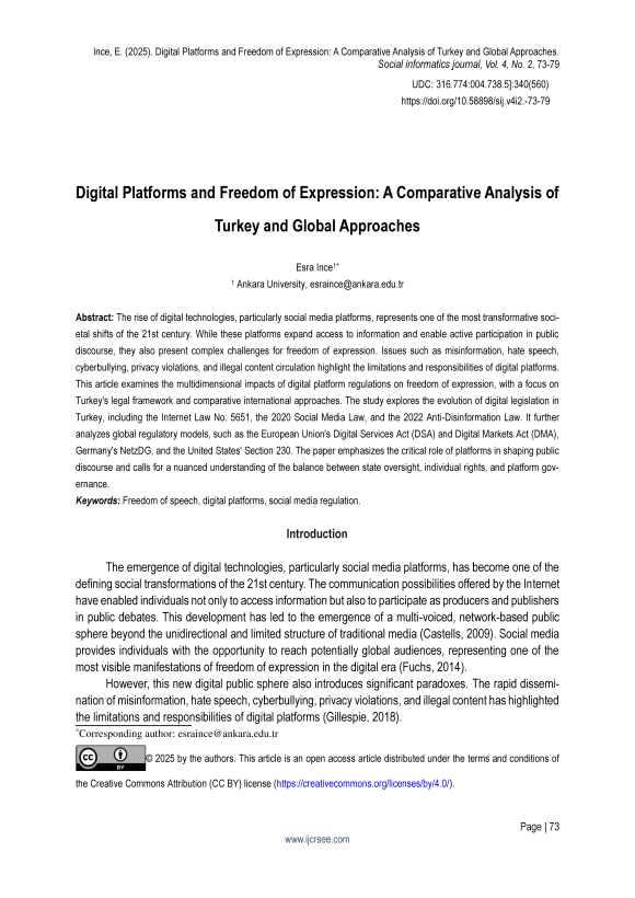 Ince, E. (2025). Digital Platforms and Freedom of Expression: A Comparative Analysis of Turkey and Global Approaches.