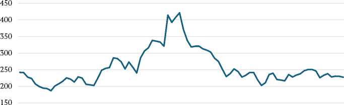 Рис. 2. Динамика экспортных цен на российскую пшеницу в 2019–2025 гг., долл./т