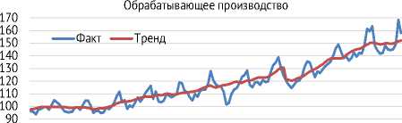 В ноябре 2025 г. трендовая составляющая обрабатывающего производства демонстрировала околонулевую динамику (101,31% г/г и 100,33% к предыдущему месяцу), что обусловлено значительной отраслевой дивергенцией: сильный рост отдельных сегментов промышленности компенсируется глубоким спадом в других.