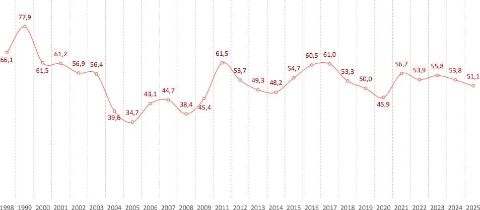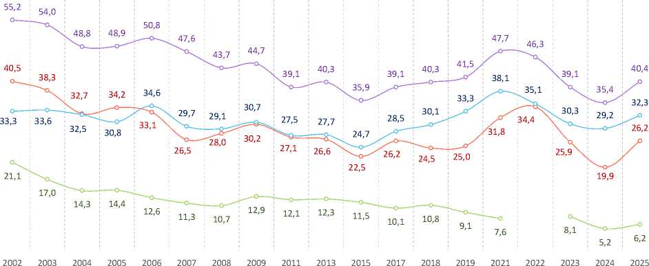 Данные за 2025 год отражают результаты опроса, проведенного с 19 сентября по 9 октября.
