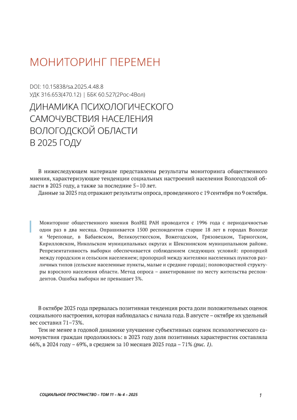 Динамика психологического самочувствия населения Вологодской области в 2025 году