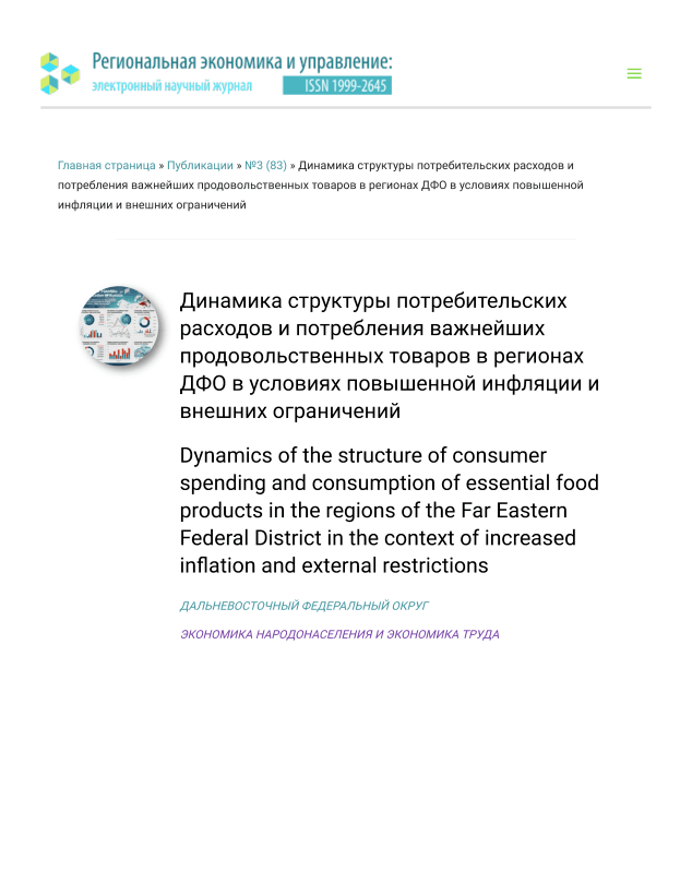 Динамика структуры потребительских расходов и потребления важнейших продовольственных товаров в регионах ДФО в условиях повышенной инфляции и внешних ограничений