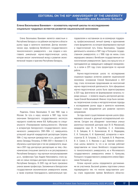 Елена Васильевна Ванкевич – основатель научной школы по исследованию социально-трудовых аспектов развития национальной экономики