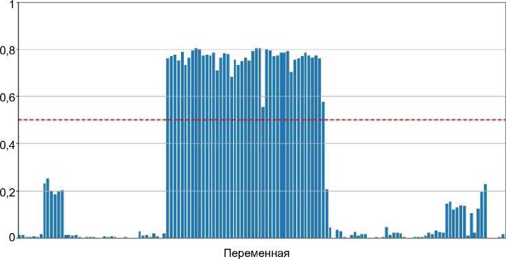 Рис. 2 . Квадраты нагрузок первого фактора для FAM 0.0