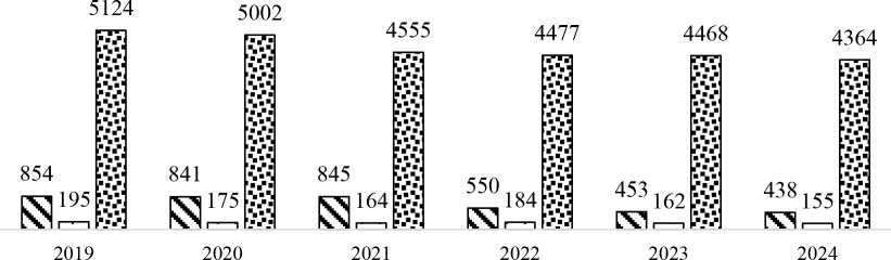 Существенно сократились госпитальные закупки в структуре проданных упаковок: если в 2019 году было продано 854 млн упаковок, то в 2024 году вдвое меньше – 438 млн упаковок. В удельном весе госпитальные закупки снизились с 15% до 8,9% к 2024 году.