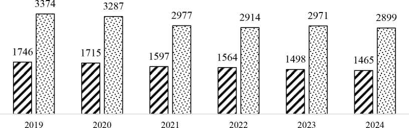 Информационную базу исследования составляют данные аналитических отчетов DSM Group о состоянии фармацевтического рынка России [12]. В ходе исследования рассмотрена динамика объема и емкости рынка, динамика и структура средних цен продаваемых ЛП; структура в разрезе основных секторов рынка и по происхождению лекарственных препаратов – импортные и локализованные. Период исследования ограничивается наиболее актуальными данными, выбор 2019 года в качестве базисного для проведения исследования связан с предшествующим началу пандемии положением, что позволяет оценить произошедшие на рынке изменения в 2020-2024 гг. При прове- дении исследования основными методами стали горизонтальный и вертикальный анализ, сравнительная оценка и интеллектуальный анализ данных.