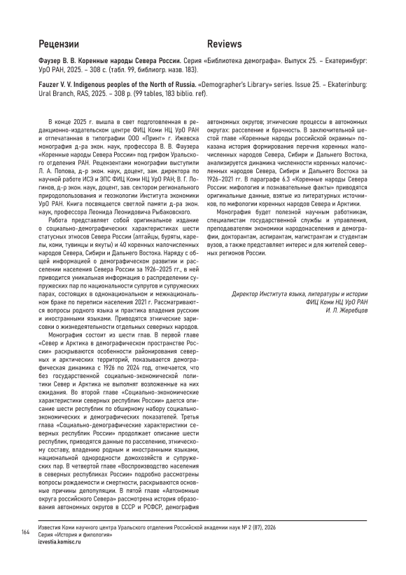 Фаузер В. В. Коренные народы Севера России