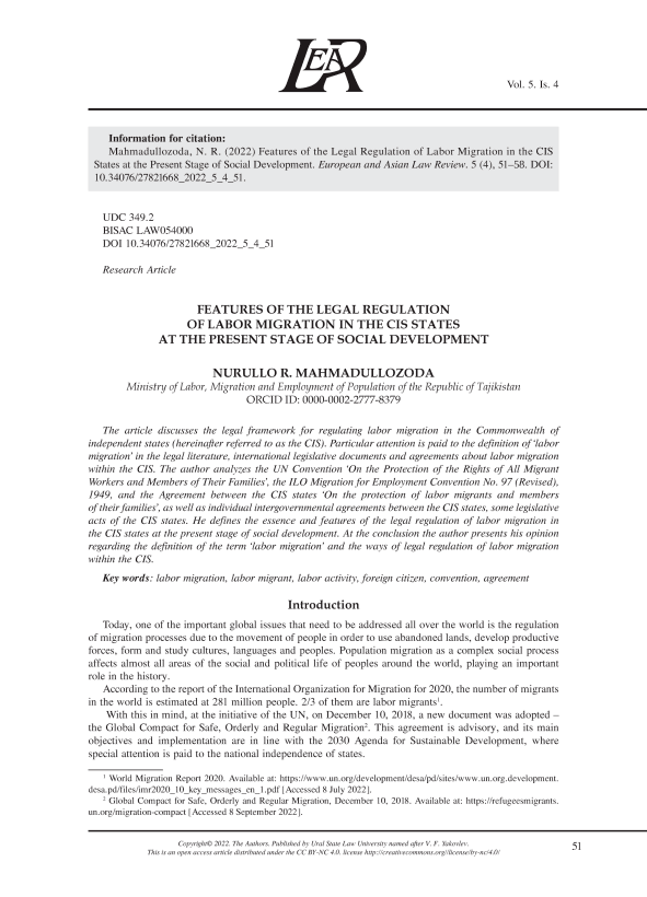 IDR: 14134885 | УДК: 349.2 | DOI: 10.34076/27821668_2022_5_4_51