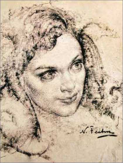 Графические произведения Н.И. Фешина (по крайней мере те, что ныне экспонируются в Государственном музее изобразительных искусств республики Татарстан, на родине худож- ника) при их создании в основном были лишены свободных двигательных актов, в которых преобладало бы действие «руки», а не «глаза». Их основу, естественно, составляют линии; однако все эти линии, за малым исключением, проведены здесь под жестким зрительным контролем. В них вовсе не чувствуется той разнузданной свободы выразительных движений, которая видна в живописных произведениях этого автора. Они отличаются строгостью и тщательностью исполнения (Илл 2). Здесь можно видеть просто классические образчики академического рисунка, которые по своим моторным характеристикам составляют в этом отношении противоположность живописи Н.И. Фешина.