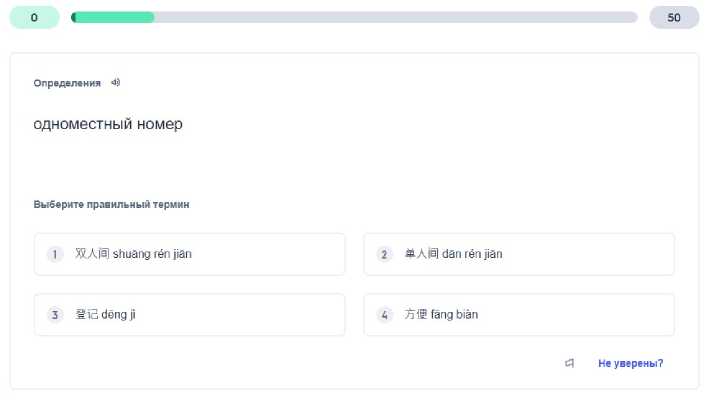 Рисунок 1. Интерфейс приложения Quizlet в режиме «Заучивание», демонстрирующий процесс запоминания лексики