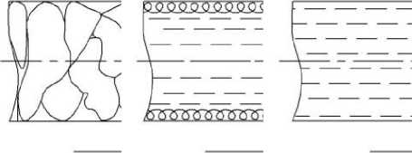 Качественная оценка процесса вязкопластического формования дрожжей такова. Перемещение дрожжей в начальный момент загрузки протекает с незначительной деформацией при произвольном расположении пластов вследствие того, что давление в камере равно практически атмосферному давлению. По мере перемещения дрожжей к зоне прессования II давление постепенно повышается (рисунок 6, а).