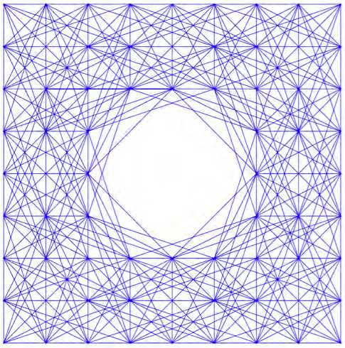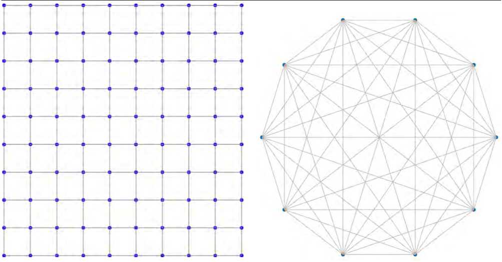 Полный граф – топология, в которой каждая пара из N узлов соединена единственным ребром. Это экстремальный случай связности, служащий эталонной моделью в теории графов (см. рис. 12).