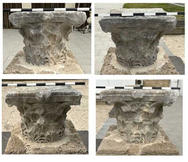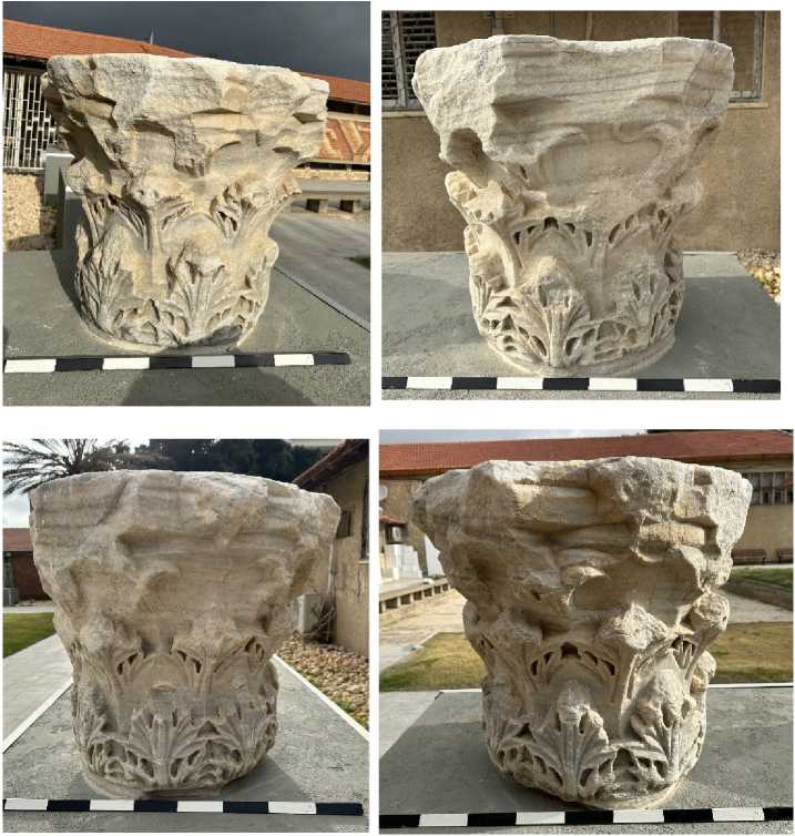 Fig. 8. Corinthian capital, item no. 1. Photos and processing by the author. Proconnesian marble. Meas.: h 0.85 m, w 0.80 m, d 0.50 m.