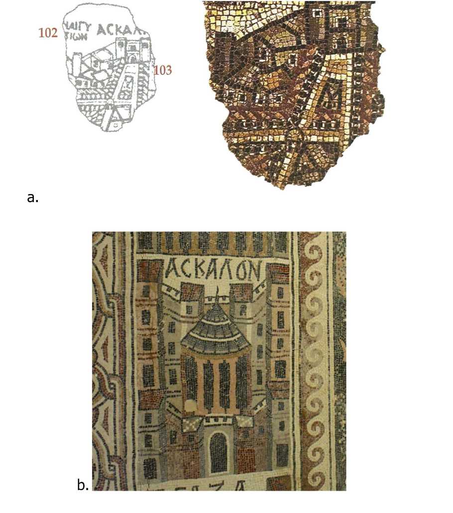 Fig. 4. a. Ascalon on the Madaba mosaic map (5th century CE).