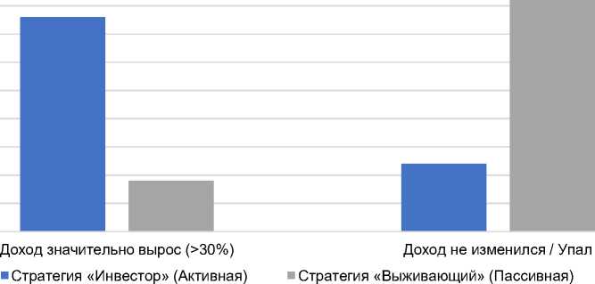 Рис. 1 . Корреляция между типом стратегии («Инвестор»/«Выживающий») и изменением дохода через 12 месяцев, %