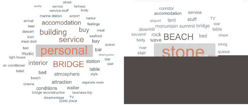 The weak point of these methods is the fact that they do not take into account the content of tourists’ reviews, focusing only on their generalized quantitative assessment of separate parts of tourist-recreational space characteristics.