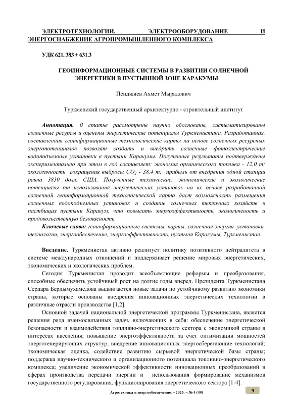 Геоинформационные системы в развитии солнечной энергетики в пустынной зоне Каракумы